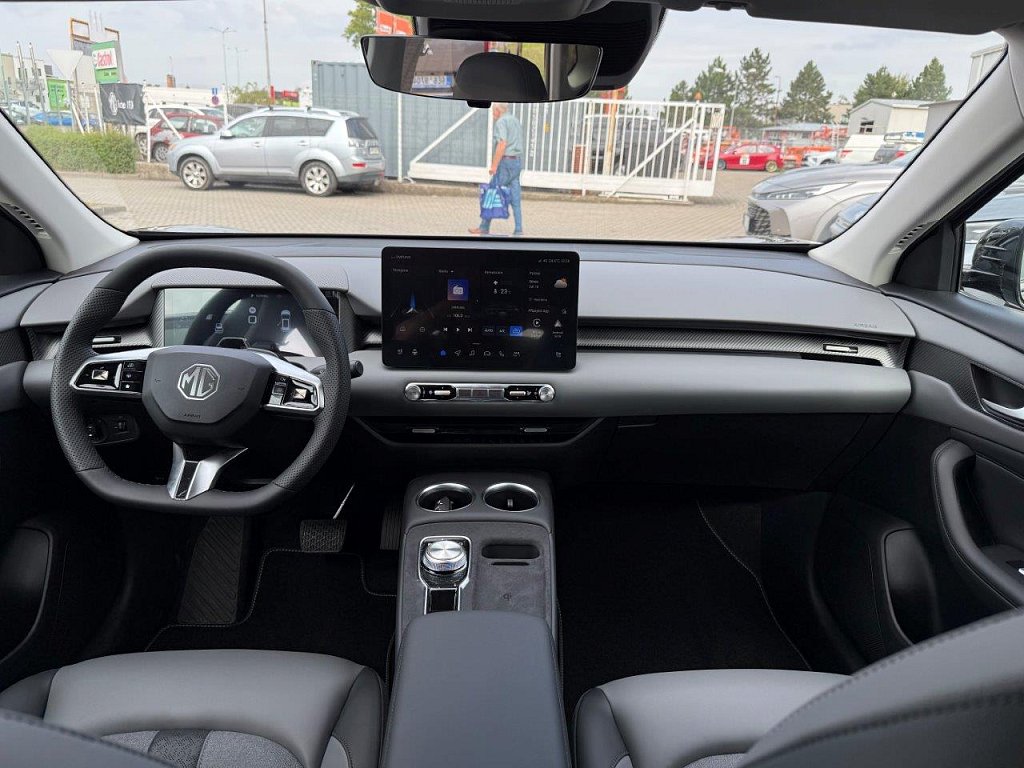 Asistent udržení v jízdním pruhu (LKA) s varováním před opuštěním pruhu systém (LDWS) a nouzové udržení pruhu (ELK), Systém varování před opuštěním jízdního pruhu (LDW), Inteligentní omezovač rychlosti (SAS), Asistent pro jízdu v dopravní koloně (TJA), Automatická dálková světla (IHC), Upozornění na vozy přijíždějící z boku při couvání (RCTA), Rádio AM/FM/DAB+, Online služby (další služby zahrnují Počasí, Živý provoz, Youtube, Spotify, TikTok), Bezdrátové připojení k Apple CarPlay™ a Android Auto™, Plánovač cesty EV, 12,8" HD dotyková obrazovka infotainmentu, Digitální přístrojový panel s 10,25" barevným displejem, 4 USB porty (3 přední - 2 typu C + 1 typu A na zpětném zrcátku, 1 zadní - typu C), Příjem digitálního rozhlasového vysílání (DAB), Systém sledování pozornosti řidiče (DMS), Přední středový airbag, Autohold s asistencí při rozjezdu do kopce, Systém aktivního řízení stability (ESP), Nouzový brzdový asistent (EBA), Alarm - elektronické zabezpečení, Akustické upozornění na nezapnutý bezpečnostní pás řidiče, Akustické upozornění na nezapnutý bezpečnostní pás spolujezdce, Varování před přijíždějícími vozidly při otevírání dveří (DOW), Systém ISOFIX na zadních sedadlech (2x), Čelní airbagy řidiče a spolujezdce (x2), deaktivace airbagu spolujezdce, Antiblokovací brzdový systém (ABS) & ,Elektronický systém rozdělení brzdného účinku (EBD), 18" kola z lehké slitiny ve stylu Rotor s aerodynamickým krytem, Možnost míry rekuperace elektrické energie (KERS, 4 úrovně), Možnost využití vozidla jako záložního zdroje energie (V2L), LED denní světlomety, LED zadní světlomety, Automatické světlomety, Stříbrné střešní ližiny, Zatmavená zadní okna, 360° panoramatická parkovací kamera, Zadní střešní spoiler, Zadní parkovací senzory, Elektricky nastavitelná, sklopná, vyhřívaná, černá zrcátka, Aktivní systém mřížky (AGS), Bezklíčový přístup a startování pomocí tlačítka, Výškově a podélně nastavitelný volant, Sluneční clona u řidiče a spolujezdce, Bluetooth klíč pro mobilní telefony, Ruční stmívání zpětného zrcátka, Předehřev baterie před nabíjením, Kůží potažený volant, Elektricky ovládané páté dveře, Možnost vlastního nastavení jízdních režimů (5 režimů), Osvětlení pro čtení vzadu, Jednopedálové ovládání zrychlování a zpomalování vozidla, Připojení k aplikaci iSmart, Automatická klimatizace s ventilačními otvory vzadu, Dešťový senzor, Elektrické ovládání předních a zadních oken, okno řidiče s funkcí AUTO a ochranou proti přivření, Automatická klimatizace, Vyhřívaný volant, Tepelné čerpadlo, Přední vyhřívaná sedadla, Čalounění v kombinaci kůže/látka, Středová loketní opěrka vzadu, Sedadlo řidiče s manuálně nastavitelnou bederní opěrkou, Sedadlo řidiče elektricky nastavitelné v 6 směrech, Sedadlo spolujezdce manuálně nastavitelné ve 4 směrech, Opěradlo zadních sedadel dělené v poměru 60:40, Třetí zadní brzdové LED světlo, Zadní mlhové světlo, Full LED světlomety, Audiosystém s 12,8" barevným dotykovým displejem, 6 reproduktory, tuner AM/FM, možnost přehrávání MP3, hlasové ovládání (iSMART), Systém automatického nouzového brzdění (AEB), Aktivní systém pro udržení jízdního pruhu (LKA), Adaptivní tempomat (ACC) s omezovačem rychlosti, Automatické nouzové brzdění s detekcí chodců, cyklistů i motocyklů (AEB), MG Pilot nastavitelný profil, Systém sledování mrtvého úhlu (BSM), Upozornění na změnu jízdního pruhu (LCA), Upozornění na hrozící kolizi za vozidlem (RCW), Ovládání některých funkcí pomocí aplikace iSmart (klimatizace, vyhřívání sedadel, volantu, kontrola nabití baterie,…), Vestavěná satelitní navigace, Boční airbagy řidiče a spolujezdce (x2), hlavové (okenní) airbagy vpředu a vzadu (x2), Elektronický imobilizér, Sluneční clona u řidiče a spolujezdce s kosmetickým zrcátkem, Elektricky ovládaná přední a zadní okna, Vyhřívání předních sedadel